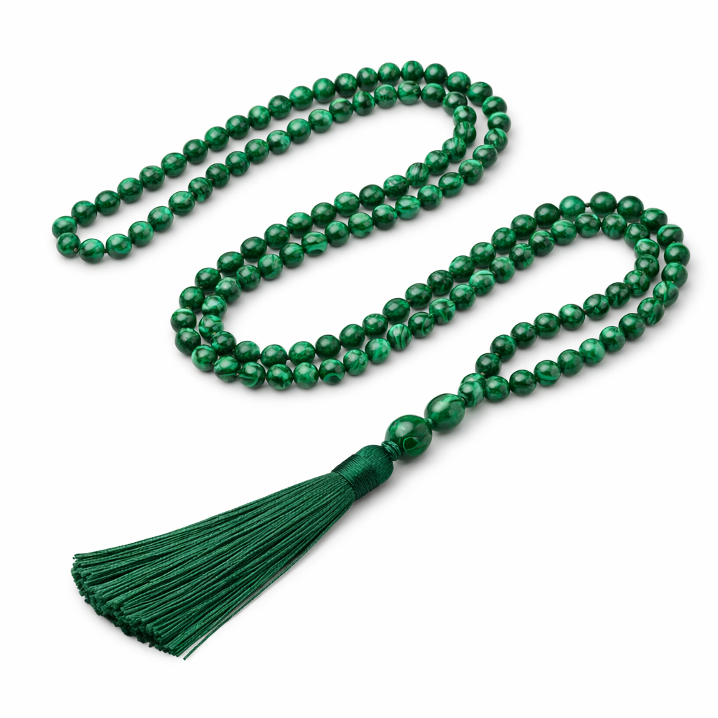 Japamala de 108 contas sagradas de Malaquite