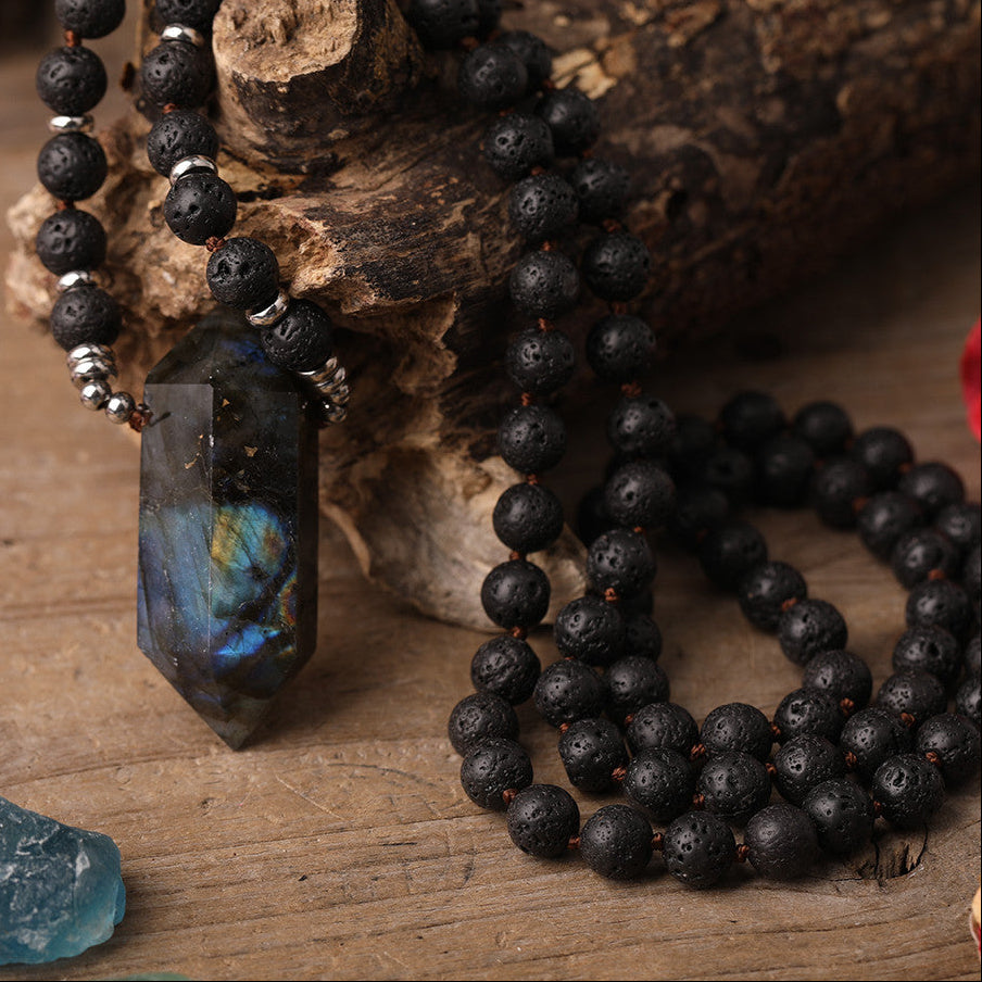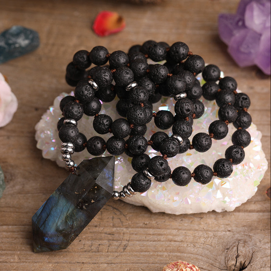 O AGNI-RĀKṢĀ é um japamala de alta frequência criado para quem caminha entre mundos — com os pés bem assentes na Terra e a intuição desperta.