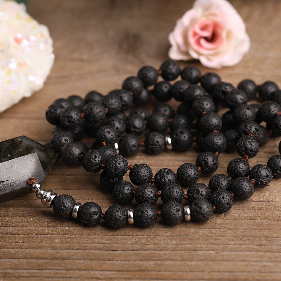 As contas de lava vulcânica transportam a memória do fogo primordial, oferecendo enraizamento, estabilidade e força interior. São ideais para quem sente muito, absorve facilmente energias externas ou precisa de se recentrar no corpo.