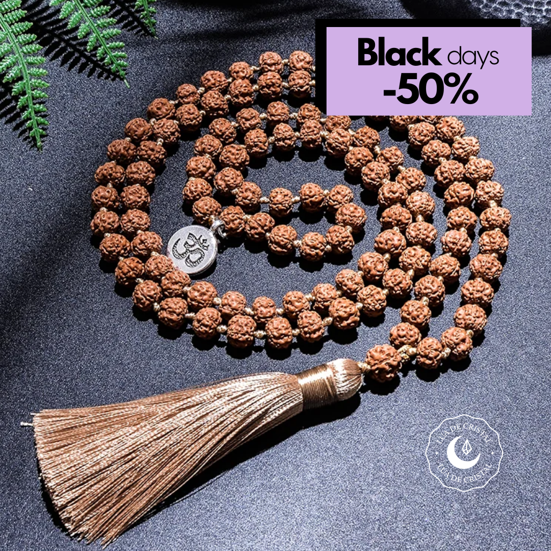 Com 108 contas para a contagem de mantras, meditações ou afirmações, e 1 conta meru que simboliza a ligação ao divino e marca o início e o fim do ciclo meditativo.