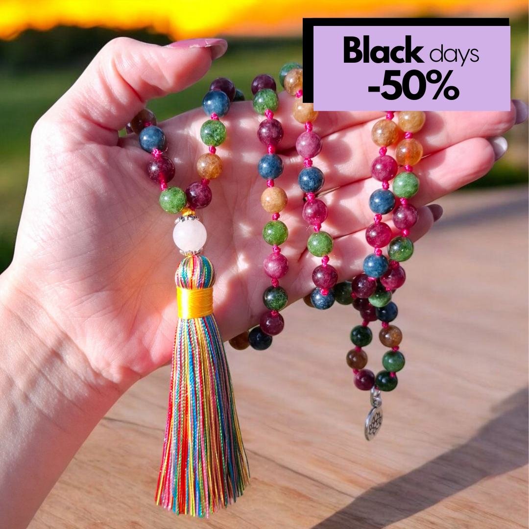 O Japamala Samadhi foi criado para ti: uma peça sagrada, feita com turmalinas coloridas, que irradiam proteção, equilíbrio e positividade.