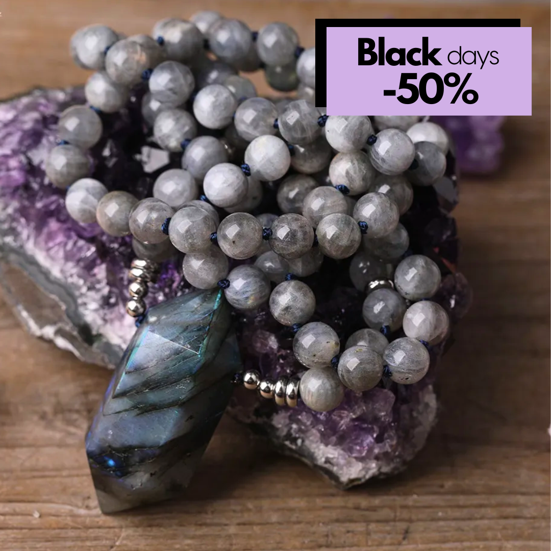 O Maya Drishti Mala é feito inteiramente de labradorite natural, uma pedra de magia e proteção espiritual. Este japamala é ideal para quem trabalha com energia, espiritualidade ou simplesmente sente profundamente tudo à sua volta.