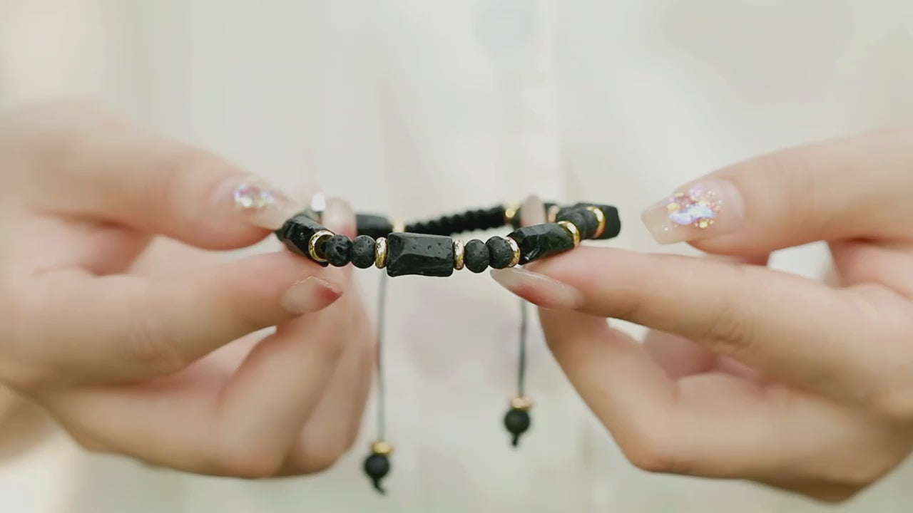 A Pulseira Kala Raksha combina a força natural da Turmalina Negra com detalhes dourados que elevam a peça a um nível superior de elegância e sofisticação. Criada para quem procura proteção constante sem abdicar de estilo, esta pulseira é um amuleto moderno para o dia a dia.